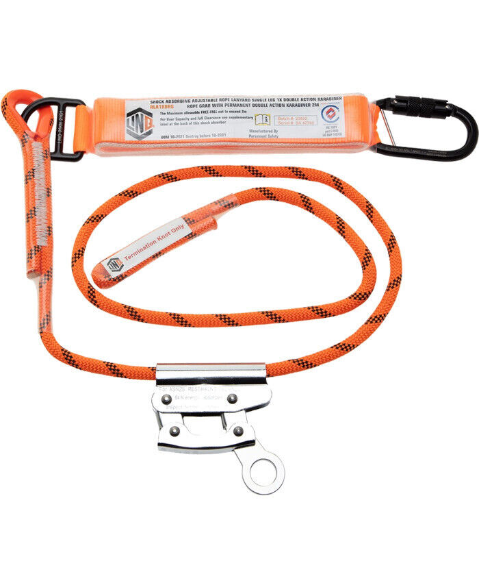 WORKWEAR, SAFETY & CORPORATE CLOTHING SPECIALISTS - LINQ Single Leg 2M Shock Absorb Adjustable Rope Lanyard with Hardware KD & RG