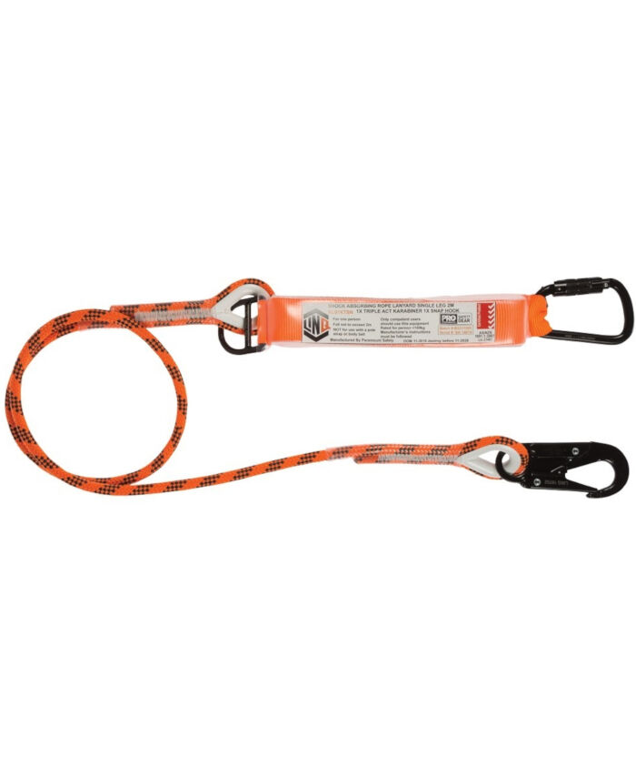 WORKWEAR, SAFETY & CORPORATE CLOTHING SPECIALISTS - LINQ Single Leg Kernmantle 2M Shock Absorb Rope Lanyard with Hardware KT & SN