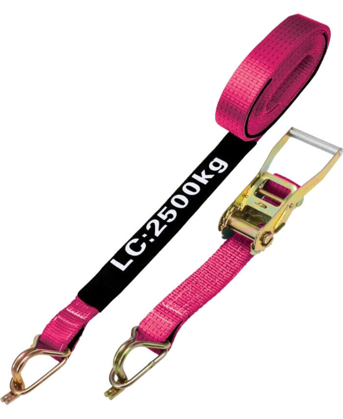 WORKWEAR, SAFETY & CORPORATE CLOTHING SPECIALISTS - RATCHET TIE DOWN 50MMx9m 2.5T HOOK AND KEEPER - PINK