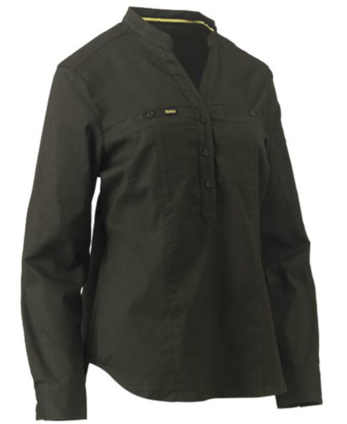 WOMENS STRETCH V-NECK CLOSED FRONT SHIRT
